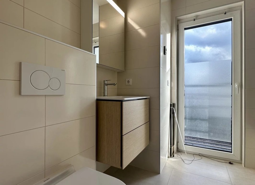 Le bien se compose comme suit : un hall d’entrée avec armoire encastrée, un living spacieux avec cuisine équipée ouverte et accès terrasse / loggia, un hall de nuit, deux chambres à coucher, dont une avec une armoire encastrée, une salle de bains avec fenêtre (baignoire, lavabo et WC), un WC séparé.
